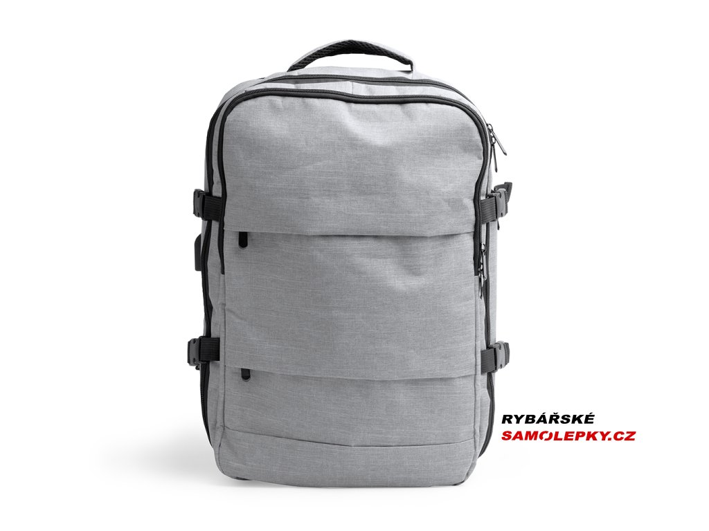 Cestovní batoh z recyklovaného polyesteru RPET, navržený pro pohodlí a funkčnost. Má polstrovaná záda a rukojeti, 2 vnější přední kapsy a 3 velké hlavní přihrádky. Obsahuje polstrovanou přihrádku na 17,3“ notebook, USB zásuvku s micro USB kabelem pro připojení powerbanky (není součástí balení) a prodyšnou přihrádku na obuv. S kapsou proti krádeži na zadní straně a popruhem na kolečkách nabízí objem 30 litrů pro organizované a bezpečné cestování.
