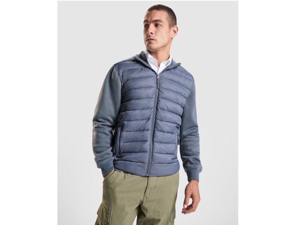 Unisex bunda se zapínáním na kombinovaný zip na přední straně. Polstrovaná přední část. Rukávy a záda z broušeného flísu. Manžety a límec s žebrováním 1x1 v odpovídajícím barvě oděvu. Boční kapsy se zapínáním na zip.Doplňkové parametry