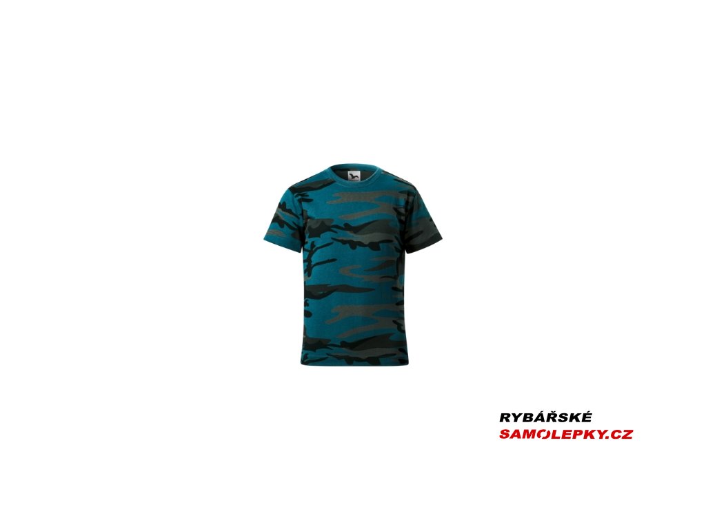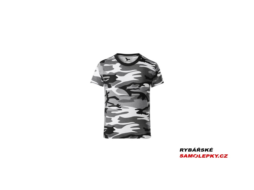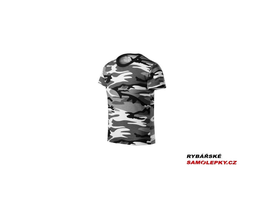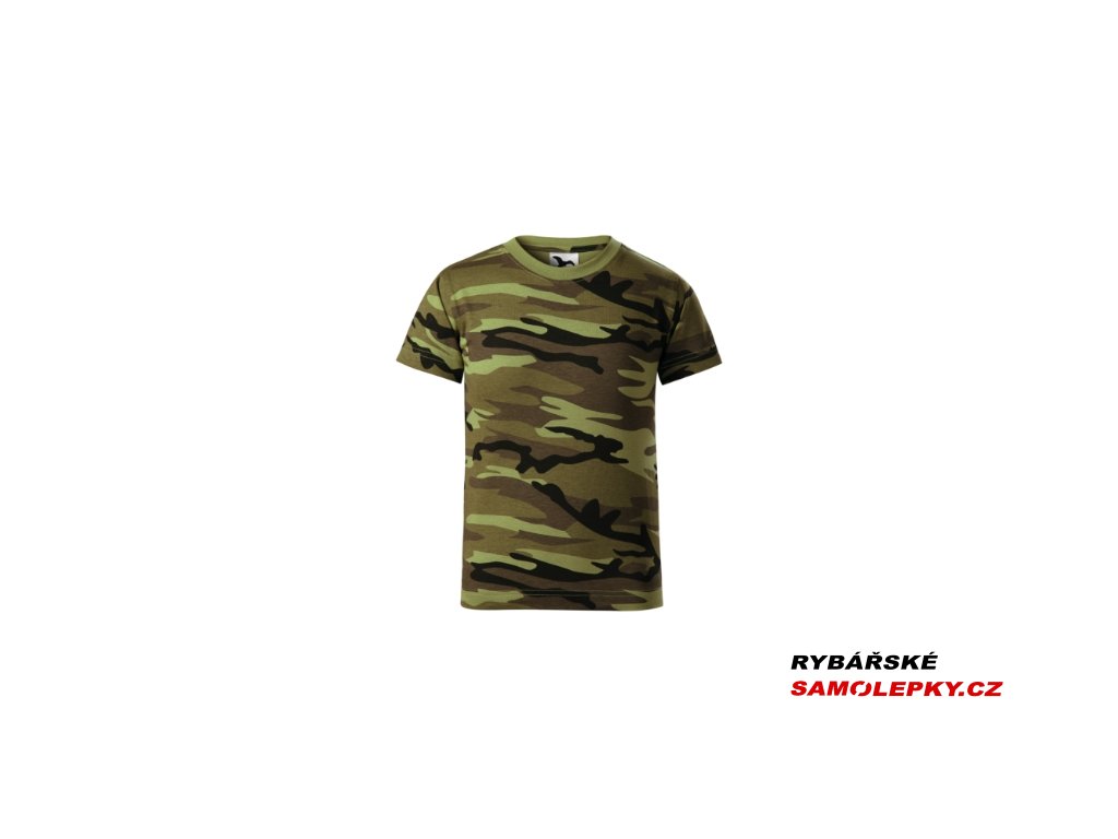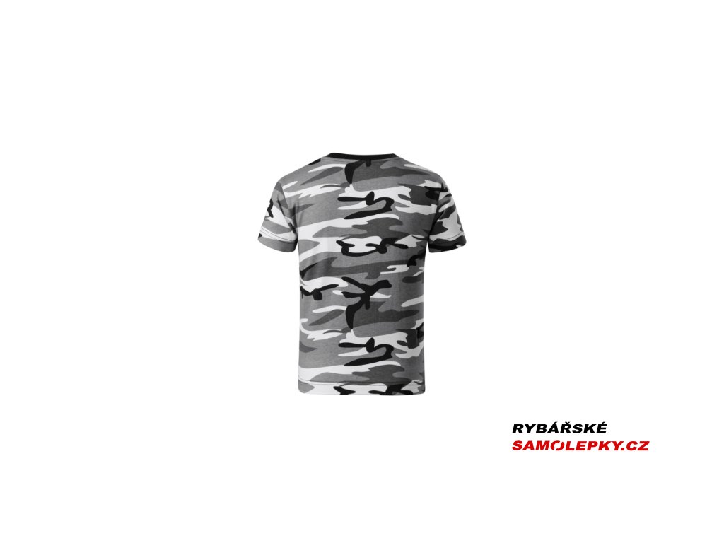 střih s bočními švy, úzký lem průkrčníku z žebrového úpletu 1:1 s 5 % elastanu, vnitřní část průkrčníku začištěna páskou v barvě camouflage, zpevnění ramenních švů páskouDoplňkové parametry