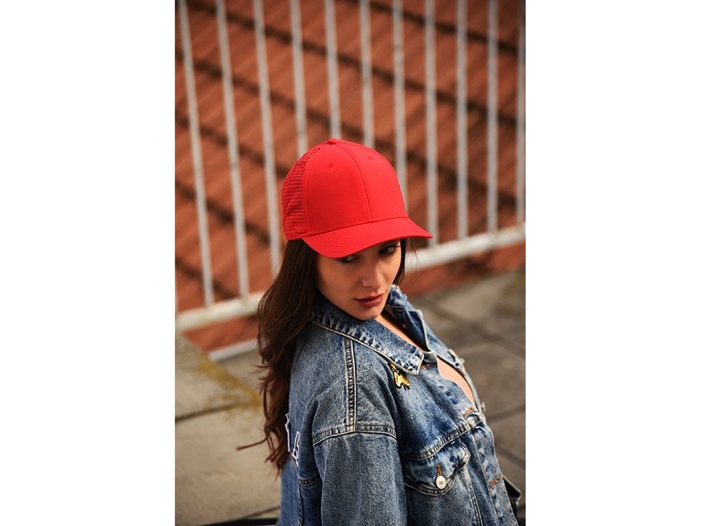 Šestipanelová čepice z funkčního a voděodolného materiálu, vyztužené čelo, nízký profil, laserově řezány větrací otvory, rychleschnoucí potící pásek. Zapínání má na suchý zip. Pro lepší odvětrávání je zadní část čepice perforovaná.