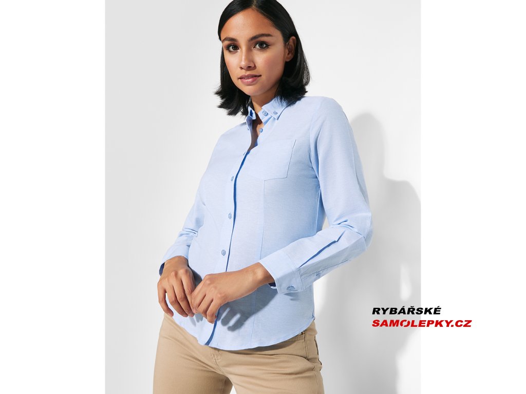 Dámská košile s levou náprsní kapsou. Zapínání na knoflíky se skrytou klopou. Button-down límeček. Záševky na přední i zadní části. Vypasovaný střih.Doplňkové parametry