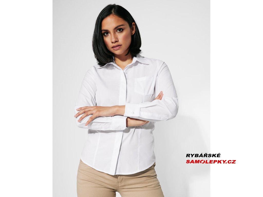 Dámská košile s dlouhým rukávem. Košile má klasický límec s 1 knoflíkem a náprsní kapsu na levé straně. Zapínání na sedm knoflíků v barve košile. Tvarovaný dolní kraj, jednoduchá údržba.Doplňkové parametry