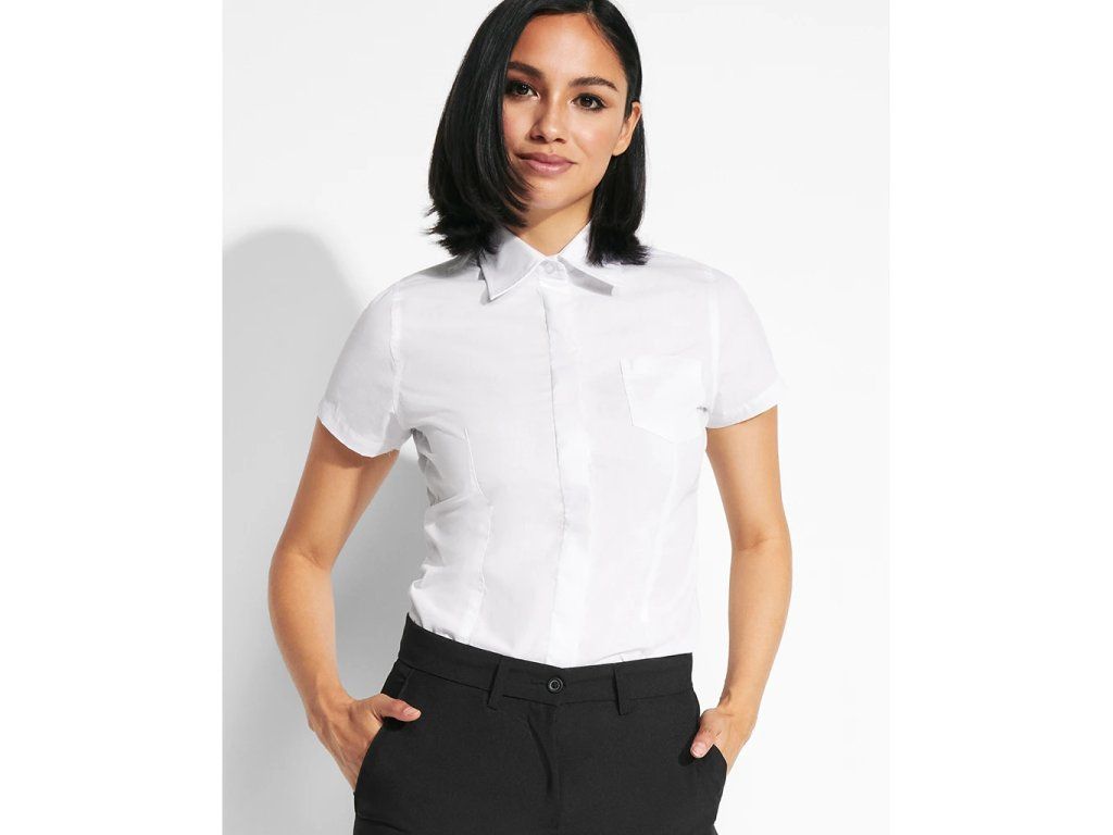 Přiléhavá dámská košile s krátkým rukávem, náprsní kapsou. Záševky na přední i zadní části. Zapínání na knoflíky se skrytou klopou. Tvarovaný dolní kraj. Jednoduchá údržba.Doplňkové parametry