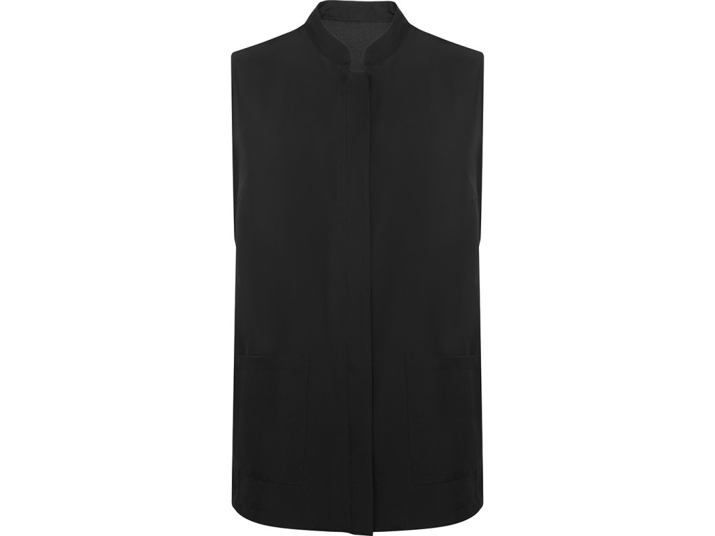 Dámská pracovní halena bez rukávů. Halena má přední skryté zapínání na druky, mandarínový límec, boční panely a záhyby na hrudi a dvě přední kapsy.Doplňkové parametry