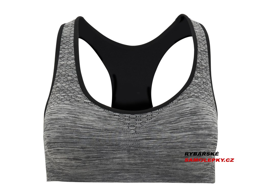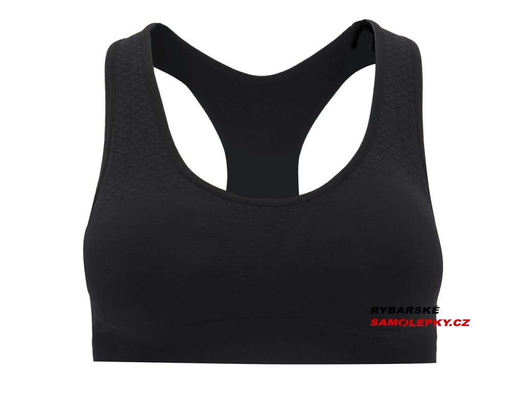 Sportovní podprsenka bez kostic s vykrojenými zády a bez zapínání. Podrsenka je rychleschnoucí a vhodná na sporty se středním stupněm aktivity. Materiál v černé barvě 90% nylon / 10% elastan.