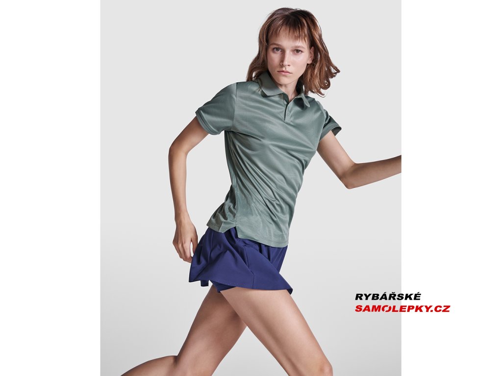 Dámská technická polokošile s krátkým rukávem s přiléhavým střihem. Límec z polyesteru s 1x1 žebrováním a plastovými sponami, které ladí s klopami. Odpovídající kryty švů. Rukávy s odpovídajícím 1x1 žebrováním.Doplňkové parametry