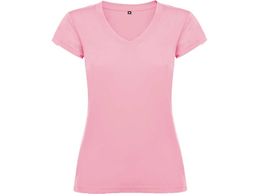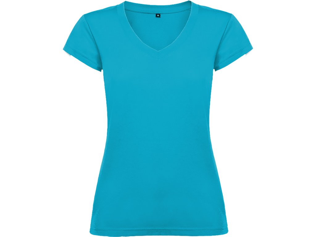 Dámské triko s krátkým rukávem a výstřihem do V. Vypasovaný střih s bočními švy.