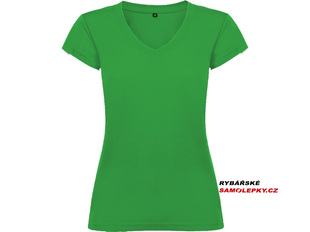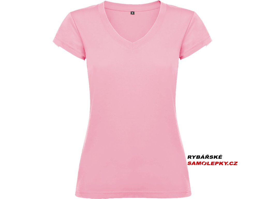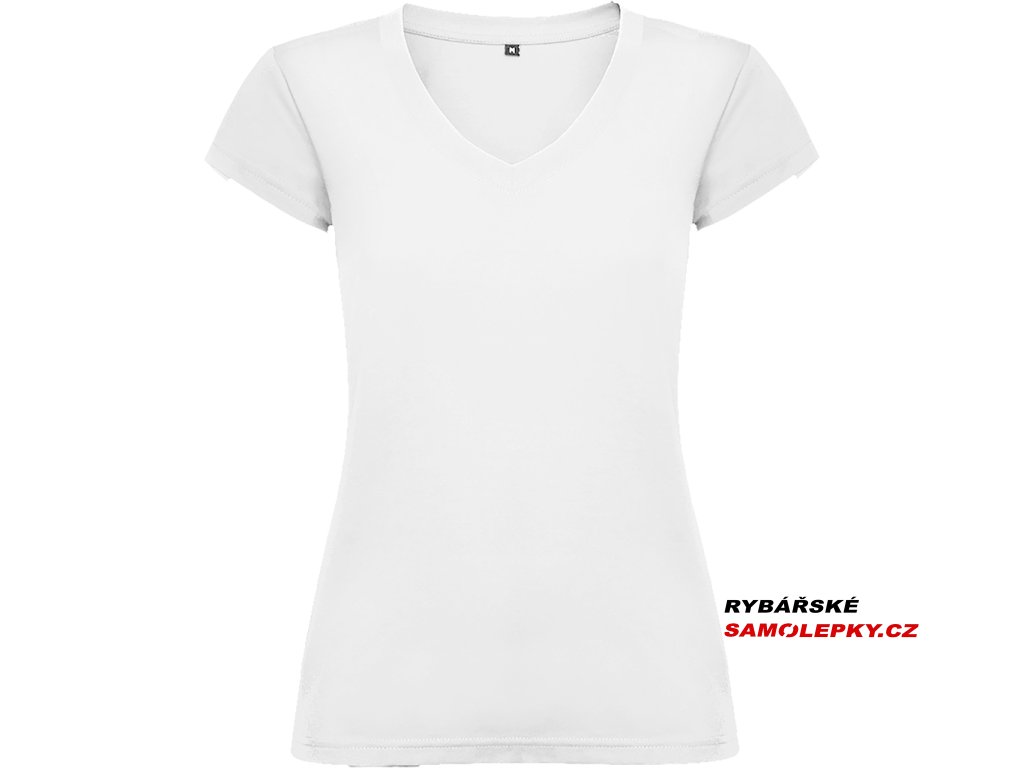 Dámské triko s krátkým rukávem a výstřihem do V. Vypasovaný střih s bočními švy.