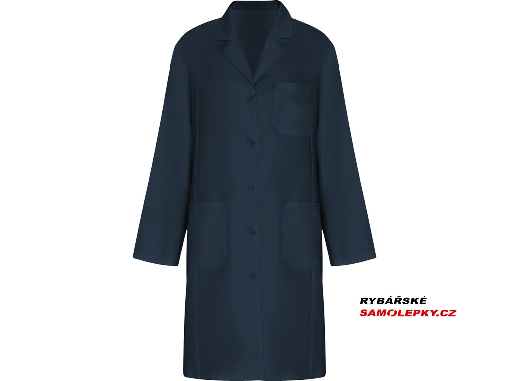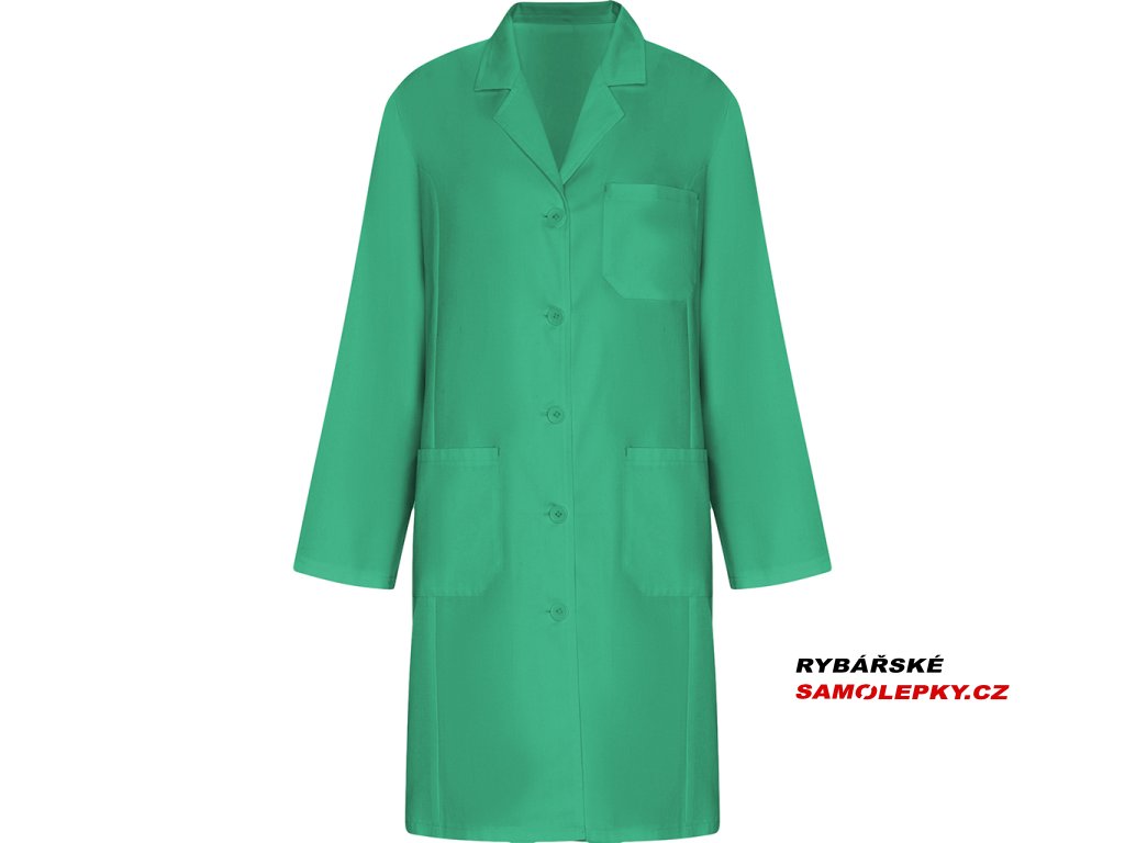 Dámský pracovní plášť s dlouhým rukávem. Plášť má límec s klopou, středové zapínání na 5 knoflíků ve stejné barvě, náprsní kapsu a dvě postranními kapsami a pásek vzadu. Plášť je vhodný do laboratoře, zdravotnictví, center estetiky, potravinového odvětví i pro úklid.