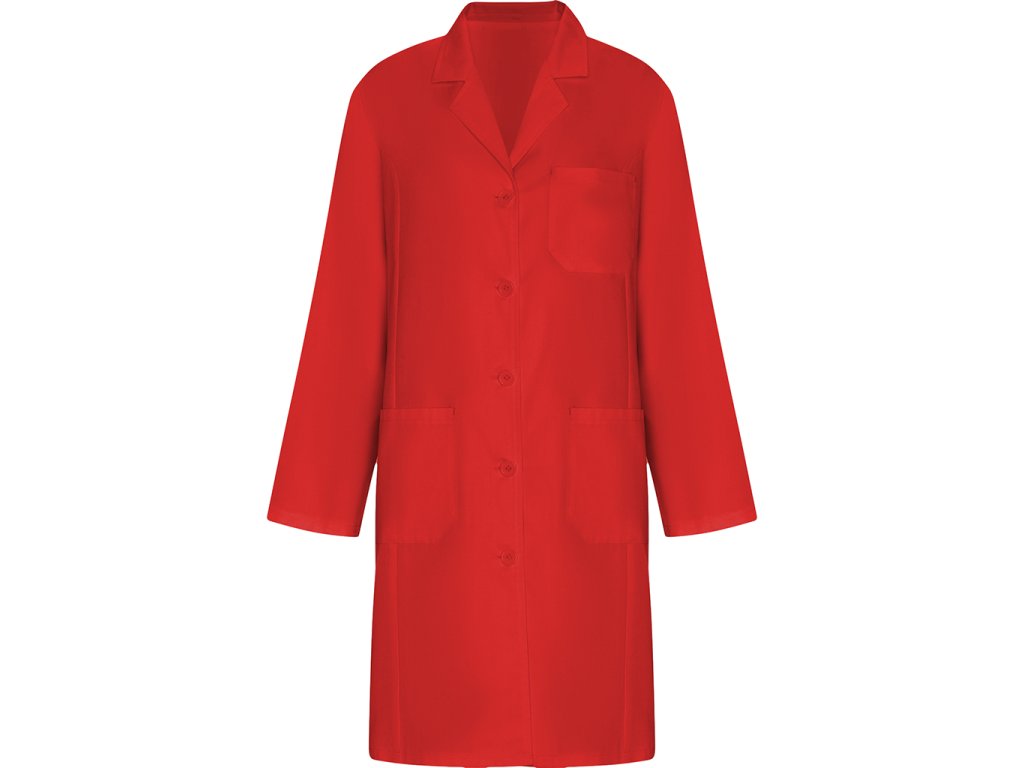 Dámský pracovní plášť s dlouhým rukávem. Plášť má límec s klopou, středové zapínání na 5 knoflíků ve stejné barvě, náprsní kapsu a dvě postranními kapsami a pásek vzadu. Plášť je vhodný do laboratoře, zdravotnictví, center estetiky, potravinového odvětví i pro úklid.