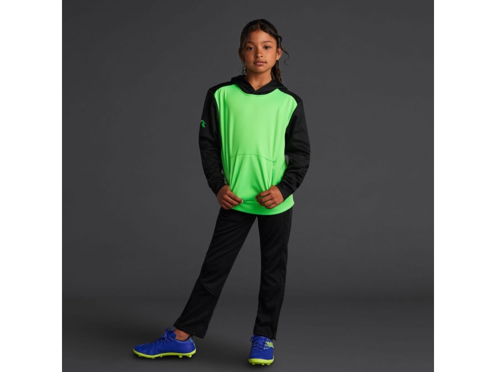 Dětská funkční mikina s kapucí ve dvoubarevném provedení, vyrobená z recyklovaného pique polyesteru s měkkou broušenou podšívkou.