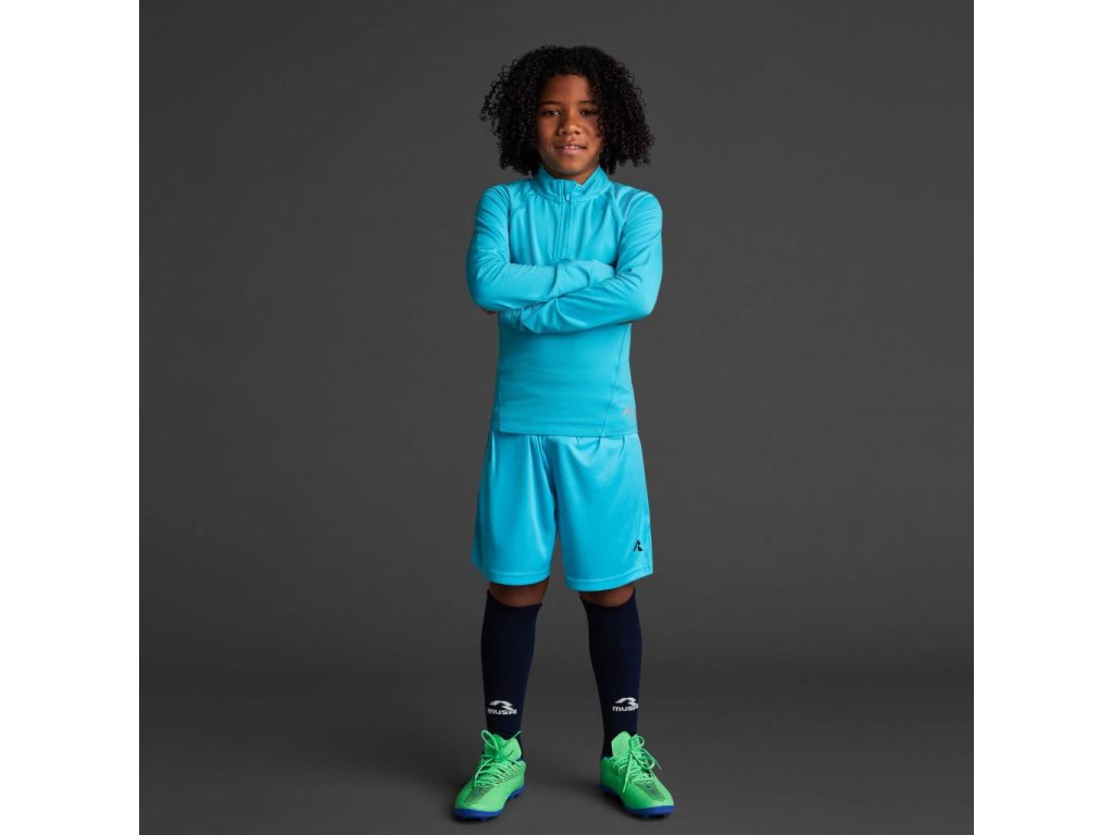 Dětská funkční mikina s raglánovými rukávy, středně vysokým límcem, vyrobená z recyklovaného polyesteru a elastanu, s mikroperforovanou podšívkou.· Stretch