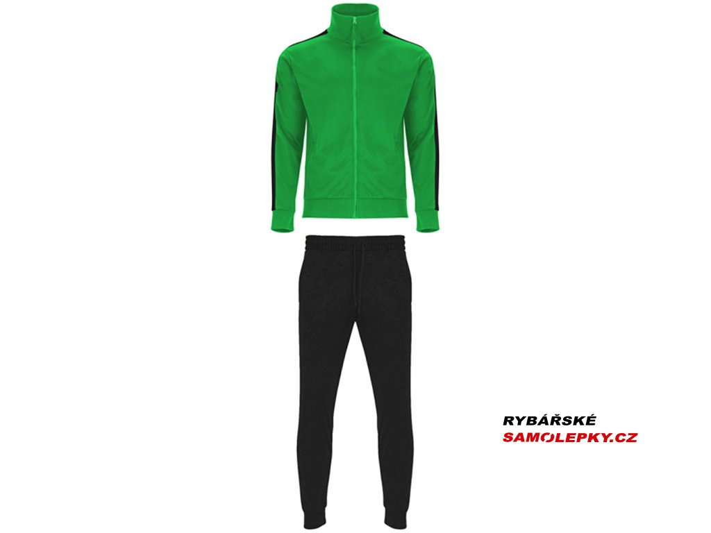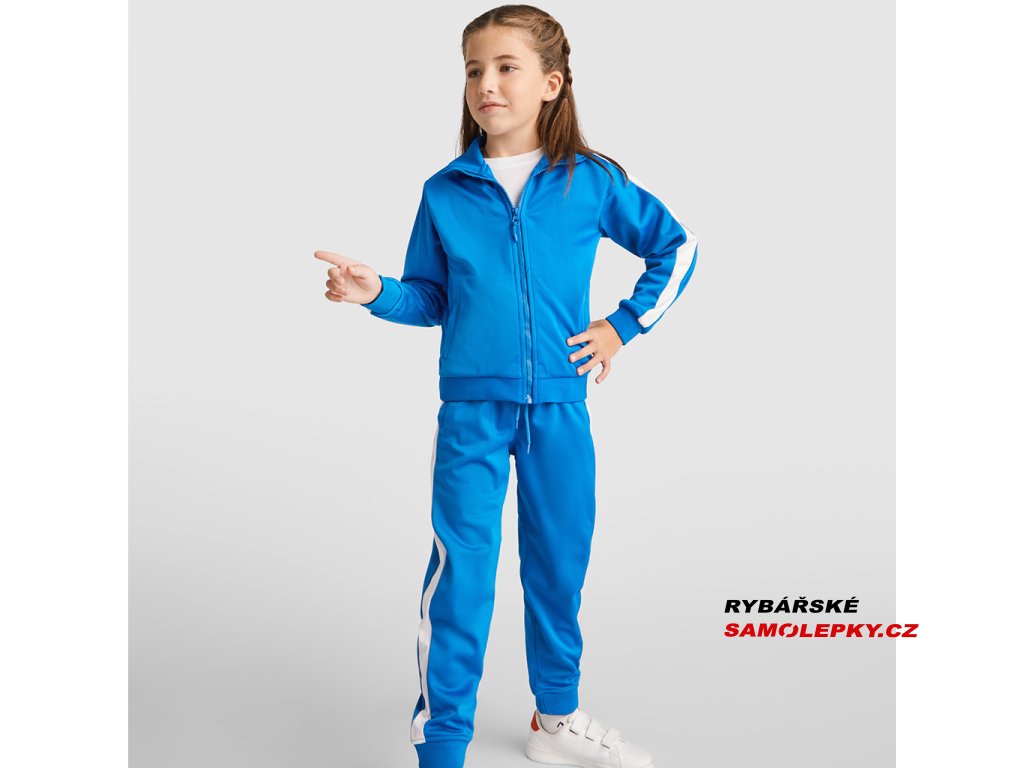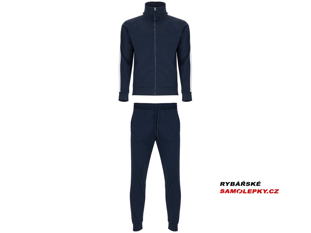 Tepláková souprava - obsahuje mikinu a kalhoty. Souprava obsahuje 1. vysoký límec, 2. Límec, manžety a spodní lem s žebrováním 1x1, 3. Celozip v ladící kombinaci s poutkem, 4. Postranní kapsy mikiny se zapínáním na zip, 5. Kontrastní postranní pruh na mikině i kalhotech, 6. Kalhoty jsou s elastickým pasem a nastavitelnou šňůrkou, 7. Dvě postranní kapsy, 8. Zadní kapsa na zip, 9. Spodní lem s elastickými žebrovanými manžetami 1x1.
