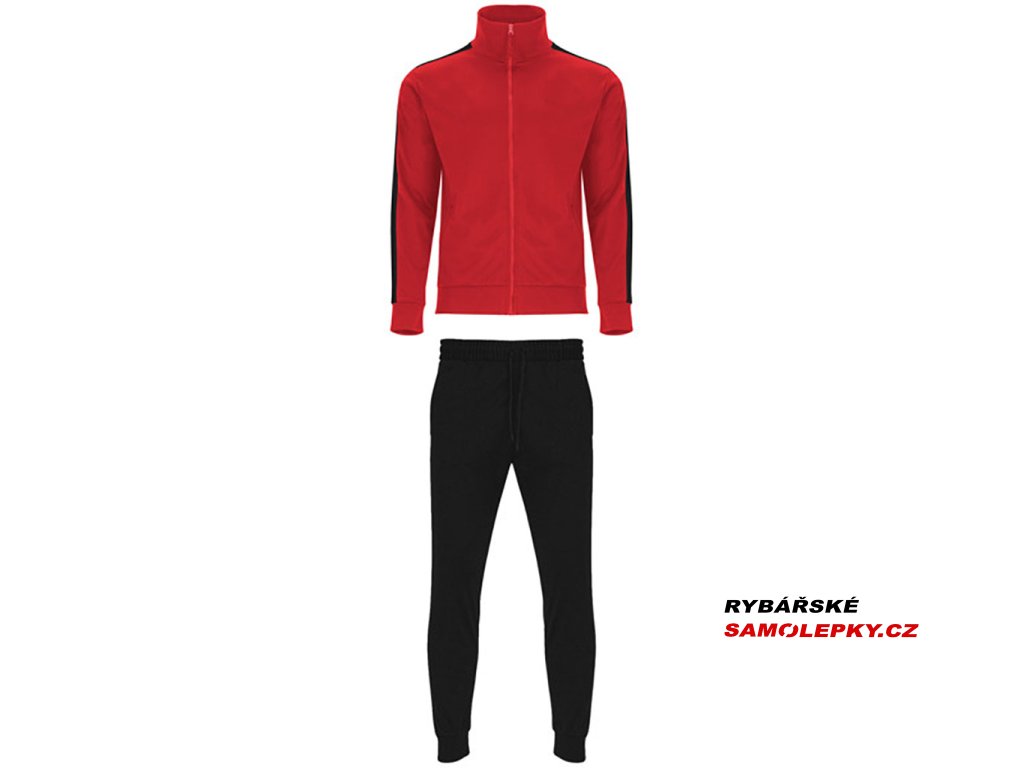 Tepláková souprava - obsahuje mikinu a kalhoty. Souprava obsahuje 1. vysoký límec, 2. Límec, manžety a spodní lem s žebrováním 1x1, 3. Celozip v ladící kombinaci s poutkem, 4. Postranní kapsy mikiny se zapínáním na zip, 5. Kontrastní postranní pruh na mikině i kalhotech, 6. Kalhoty jsou s elastickým pasem a nastavitelnou šňůrkou, 7. Dvě postranní kapsy, 8. Zadní kapsa na zip, 9. Spodní lem s elastickými žebrovanými manžetami 1x1.Doplňkové parametry