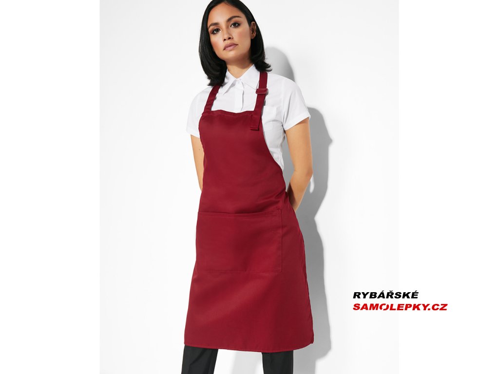 Dlouhá zástěra na vaření s přední kapsou. Délka laclu upravitelná s plastovým uzávěrem. V pase stahovací pásek.Doplňkové parametry