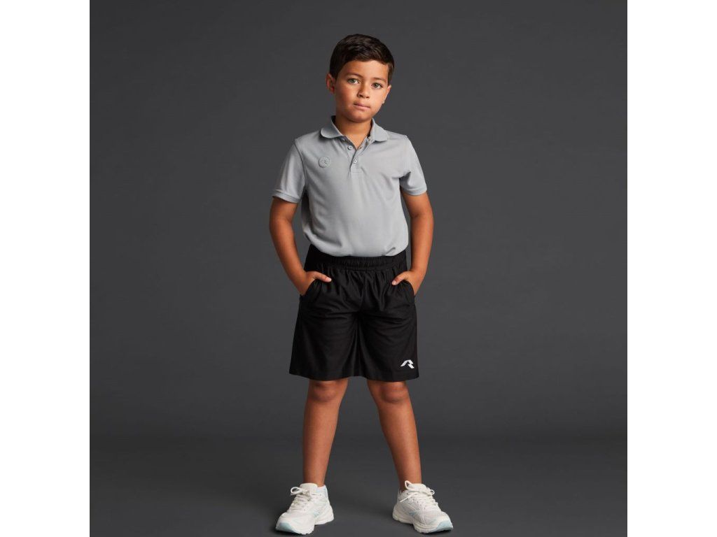 Dětské šortky s kapsami, vyrobené z tkaniny z recyklovaného polyesteru, s elastickým pasem a nastavitelnou vnitřní stahovací šňůrkou.