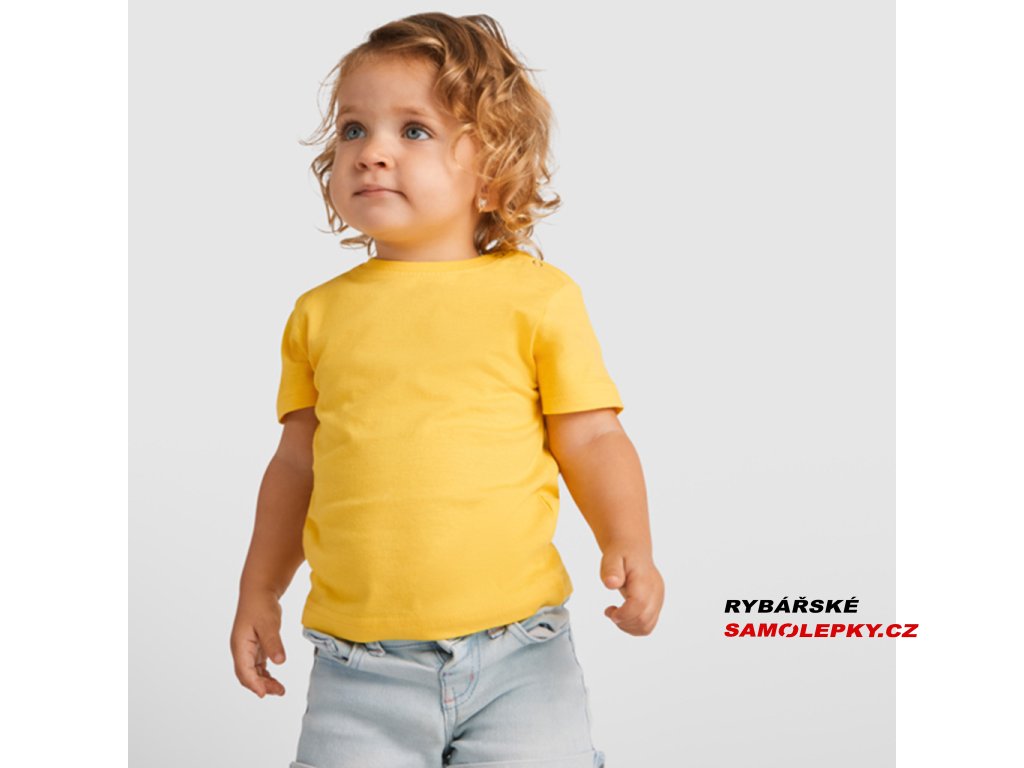 Bavlněné dětské tričko s kulatým průkrčníkem a bočními švy. Velikosti 6, 12 a 18 měsíců se zapínáním na rameni.Doplňkové parametry