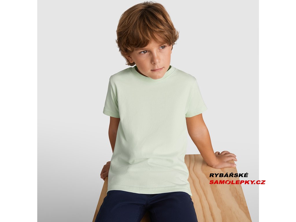 Tričko s krátkým rukávem bez bočních švů. Kulatý průkrčník s elastanem. Dětské velikosti mají boční švy. Barva 58 (melange) - složení 85% bavlna/15% polyester