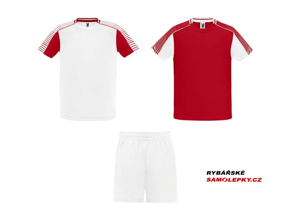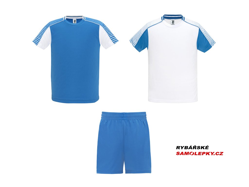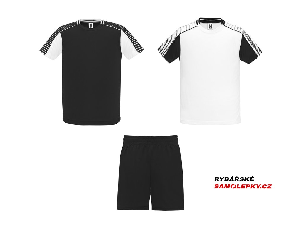 Sportovní souprava unisex. Obsahuje 2 trička a 1 kraťasy. Tričko s raglánovým rukávem a potiskem. Kulatý výstřih s úpletem na zadní straně. Barva druhého trička je zkombinovaná opačným způsobem. Kraťasy s elastickým pasem a vnitřní šňůrkou tón v tónu a s bezpečnostním prošitím. Kontrastní postranní pruh a postranní rozparek na spodním lemu nohavice kraťas.