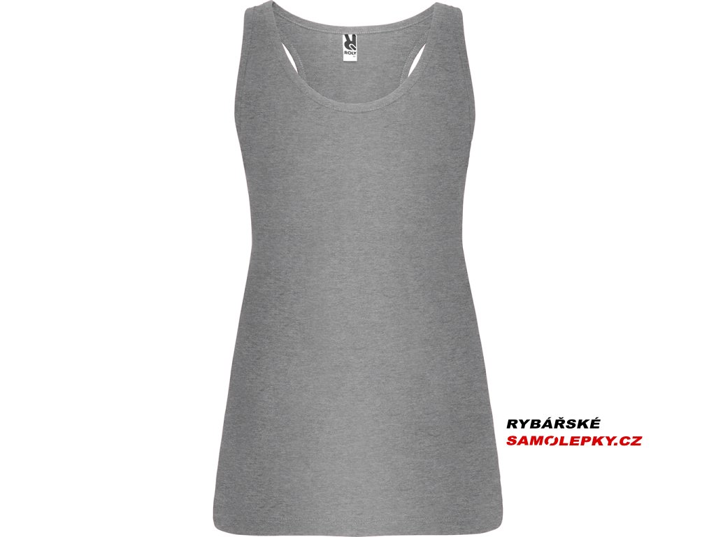 Přiléhavé dámské tílko s boxerskými ramínky z hladkého úpletu. Lemování výstřihu a ramínek z žebrovaného úpletu, boční švy. Barva 58 (melange) - složení 85% bavlna/15% polyesterDoplňkové parametry