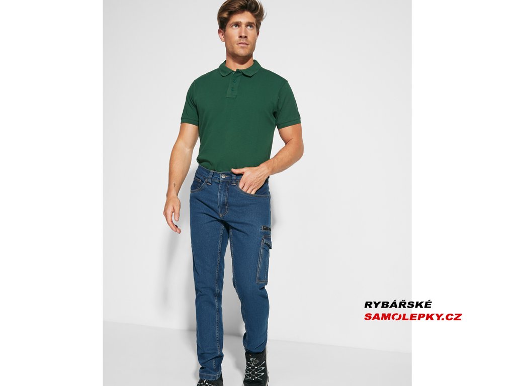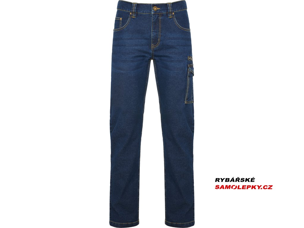 Džínové kalhoty se zapínáním na kovový zip a knoflík. Pas s poutky na opasek. Kalhoty mají levou boční skládanou kapsi s klopou a zapínáním na suchý zip, levou boční kapsu na zip a dvojitou úzkou pravou kapsu. Kontrastní švy.