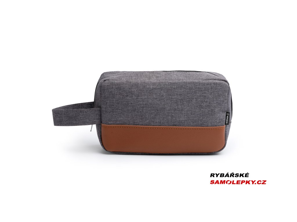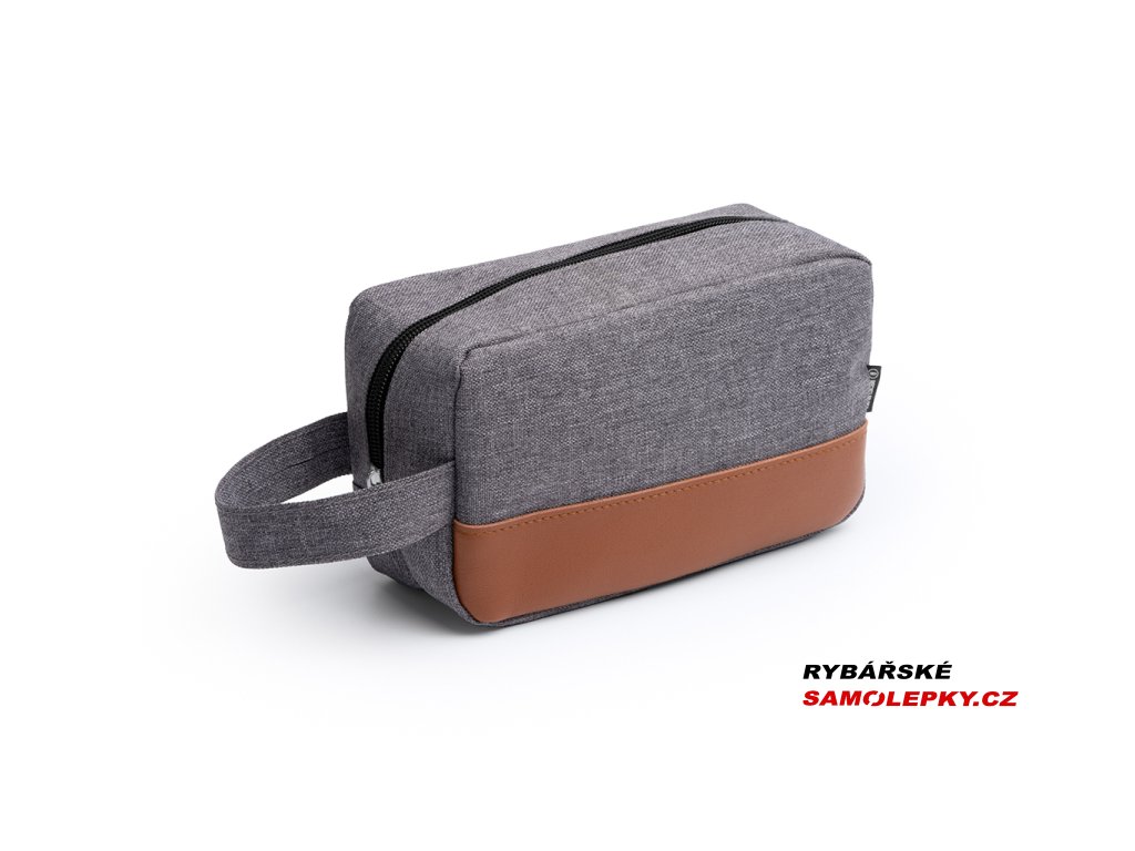 Toaletní taška z recyklovaného polyesteru RPET s detaily z PU kůže, ideální pro značení. Obsahuje rukojeť pro přenášení, která kombinuje udržitelnost a styl. Přenášejte své věci pohodlně a elegantně.Doplňkové parametry