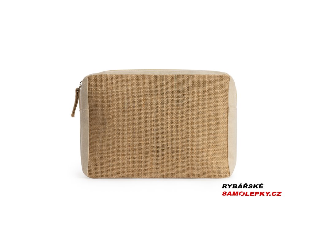 Toaletní taška z bavlny a laminované juty. Zip s odpovídajícím jutovým taháčkem.Doplňkové parametry