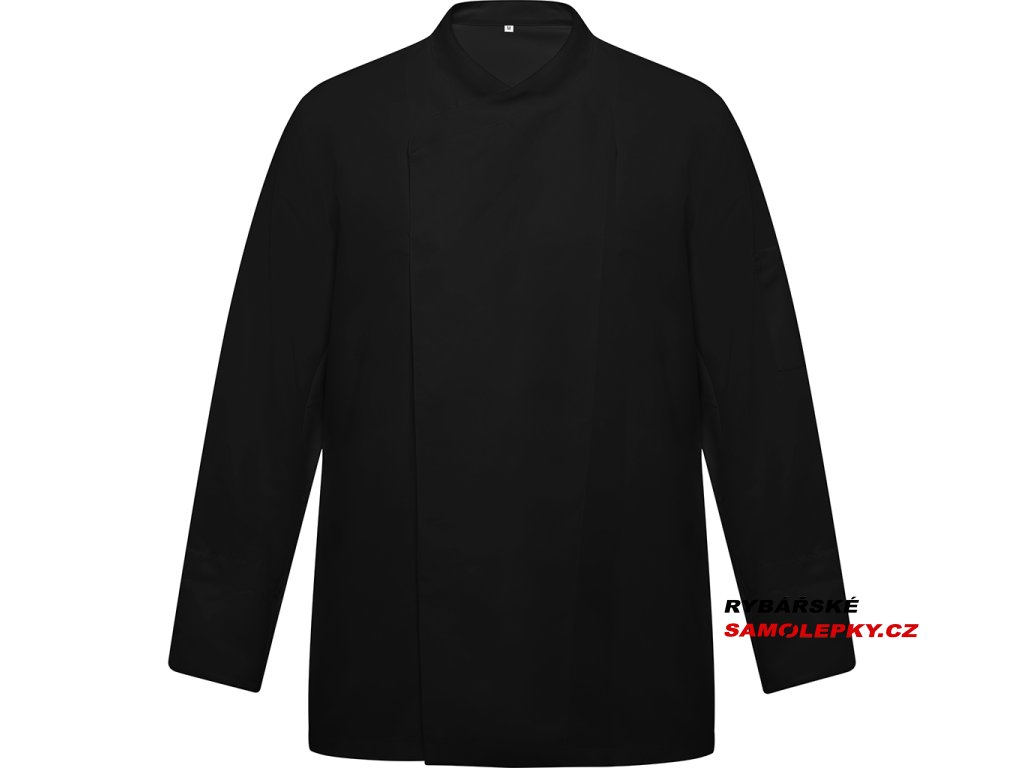 Kuchařský rondon s dlouhým rukávem, překříženým skrytým předním zapínáním na druky, mandarínovým límce a rukávy s ohrnutými manžetami. Rondon má zadní díl z prodyšné látky a pasu na levém rukávu.