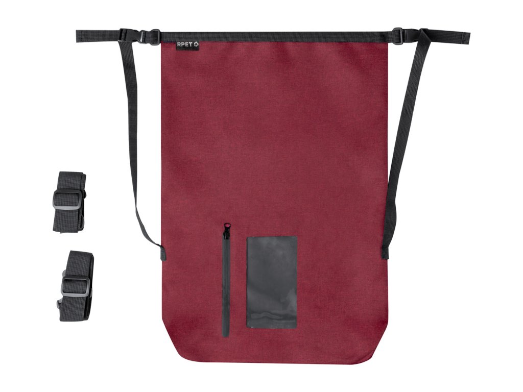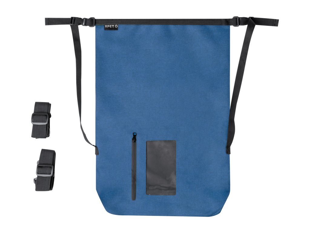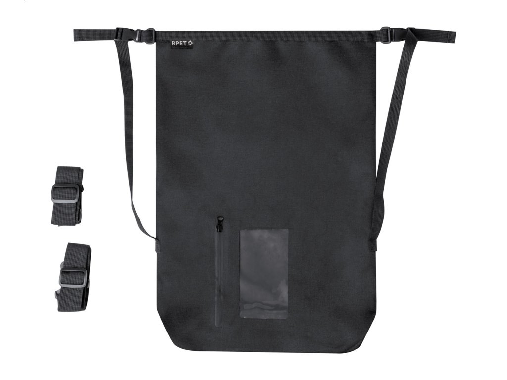 | Popis | Vodotěsný batoh z polyesteru 300D RPET s kapsou na zip na dotykovou obrazovku a nastavitelnými popruhy. Kapacita: 25l. |