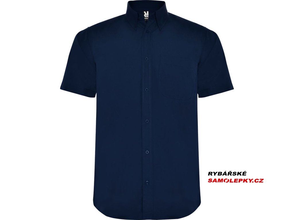 Pánská košile s krátkým rukávem. Klasický stojatý límec. Levá náprsní kapsa, zapínaní na sedm knoflíků v barvě košile.Doplňkové parametry