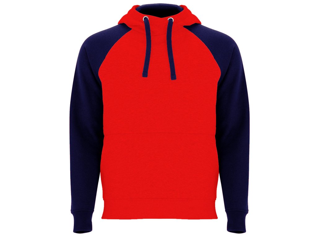 Pánská / dětská dvojbarevná mikina. Mikina má překřížený výstřih a kovové kroužky na šňůrky, kontrastní vnitřní kapuci a šňůrky, kontrastní rukáv raglánového stylu a klokaní kapsu. Manžety a spodní lem jsou s elastickým žebrováním 1x1. Odnímatelný štítek.Doplňkové parametry