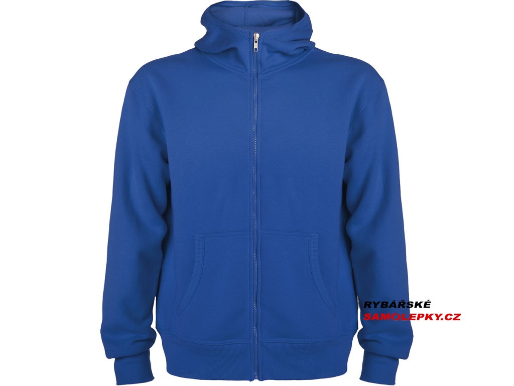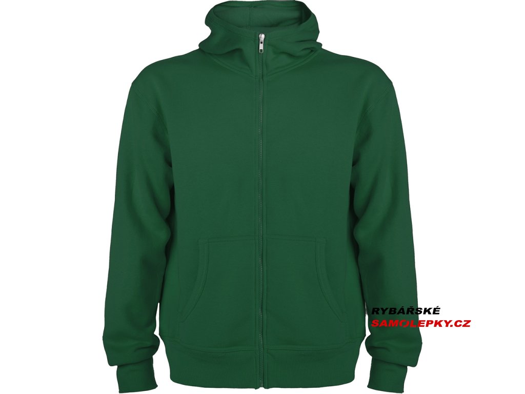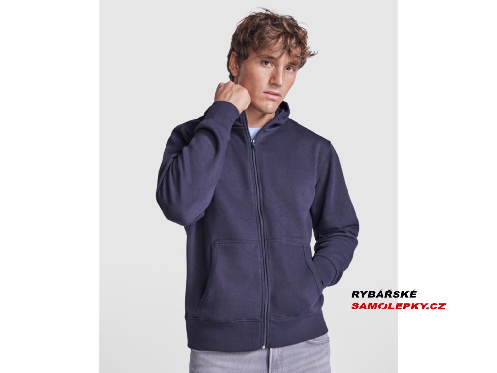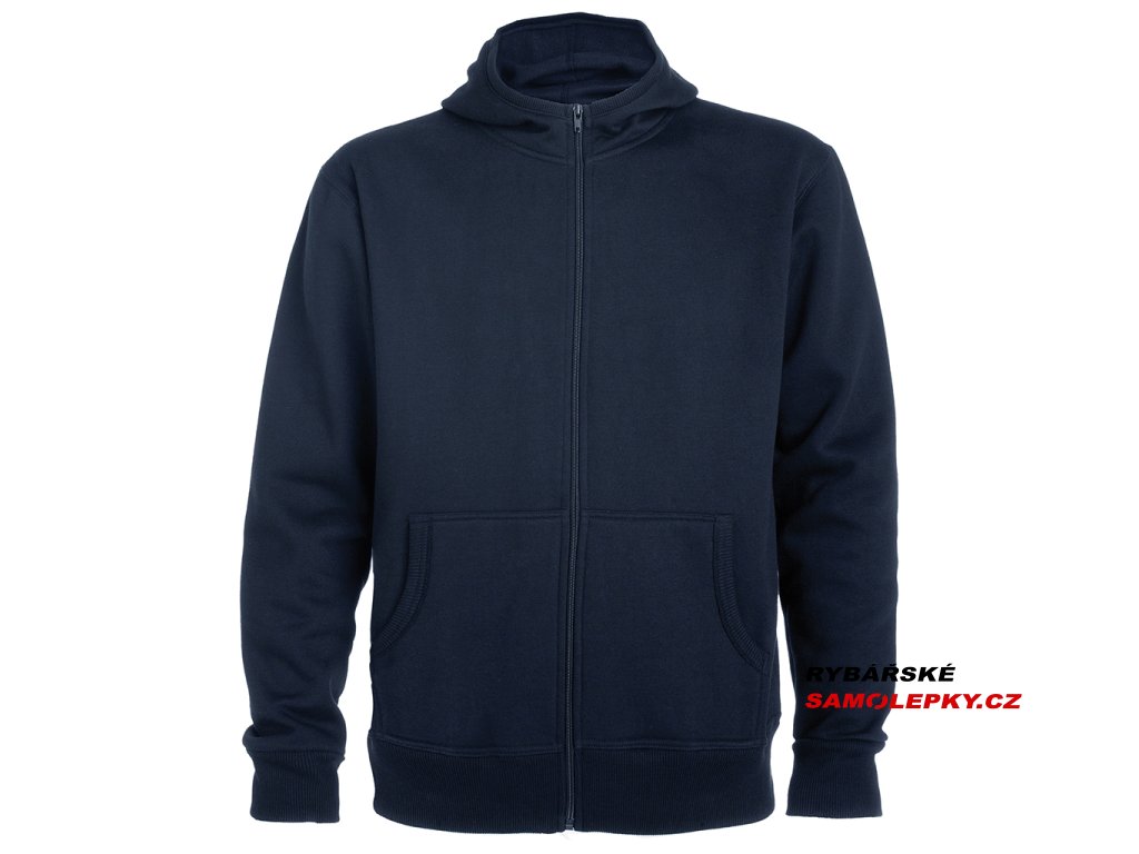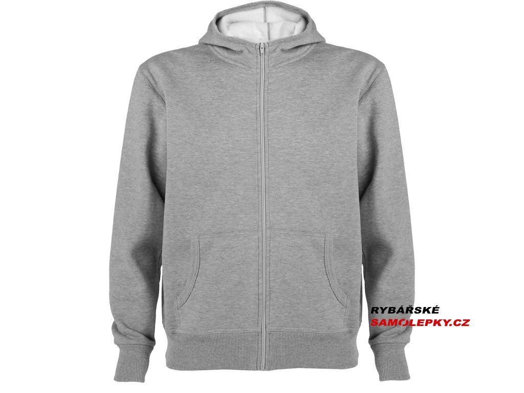 Mikina s kapucí a klokaní kapsou, celopropínací na zip. Lemování kapuce, kapes, rukávů a spodní okraj v žebrovaném úpletu 2x2.Doplňkové parametry