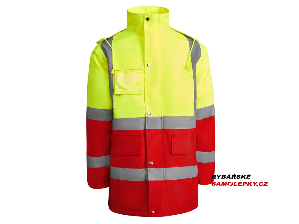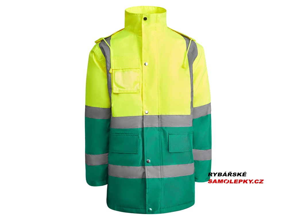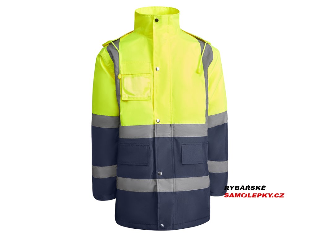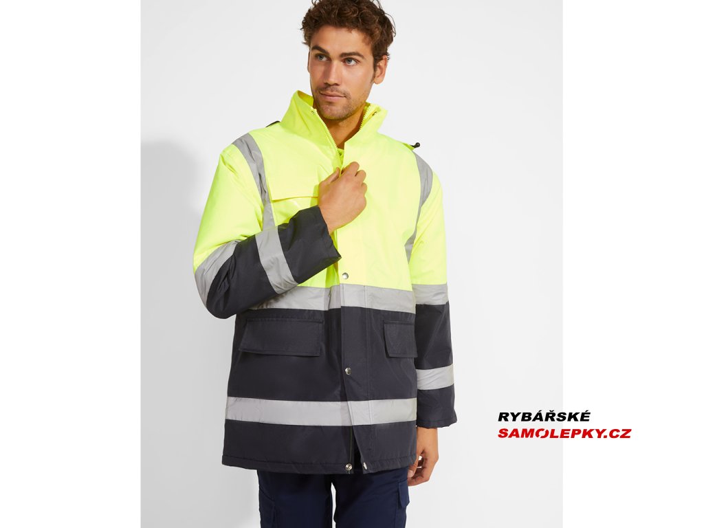 Kombinována a polstrovaná parka s vysokou viditelností. Voděodolná tkanina s tepelně utěsněnými švy. Dva vodorovné pruhy s vysokou viditelností na hrudi a rukávech a svisle na ramenou. Skládací kapuce s nastavitelnou stahovací šňůrkou. Náprsní kapsa s klopou, suchým zipem a identifikačním štítkem. Dvě přední kapsy s chlopní. Vnitřní kapsa se zapínáním na zip. Ukryté žebrované manžety 1x1. Přední zapínání na kovové knoflíky a dvojitý přední zip. Vnitřní přístup pro sítotisk. Podšívka: 100% polyester, výplň: 100% polyester. Certifikace CE podle norem: EN ISO 13688:2013/A1:2021 a EN ISO 20471:2013/A1:2017. UNE-EN 343:2019. Třída 3:3. UNE-EN 14058:2017. Třída 2. Třída II: 55221 - 55223 - 52221 - 23221. Třída III: 221.