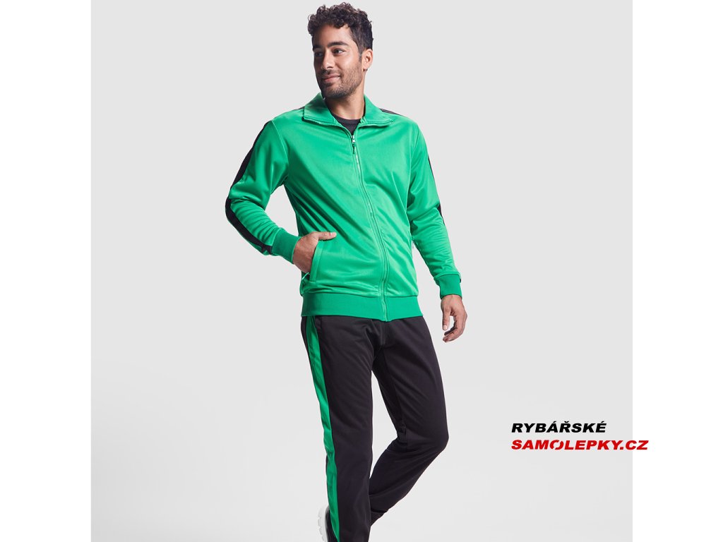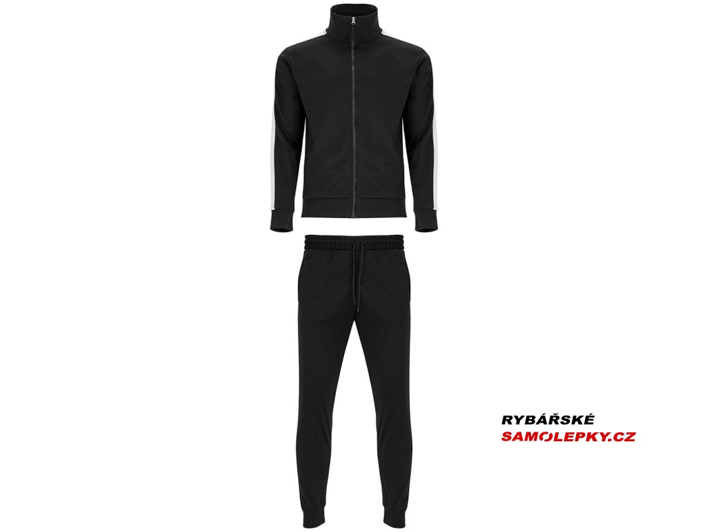Tepláková souprava - obsahuje mikinu a kalhoty. Souprava obsahuje 1. vysoký límec, 2. Límec, manžety a spodní lem s žebrováním 1x1, 3. Celozip v ladící kombinaci s poutkem, 4. Postranní kapsy mikiny se zapínáním na zip, 5. Kontrastní postranní pruh na mikině i kalhotech, 6. Kalhoty jsou s elastickým pasem a nastavitelnou šňůrkou, 7. Dvě postranní kapsy, 8. Zadní kapsa na zip, 9. Spodní lem s elastickými žebrovanými manžetami 1x1.Doplňkové parametry