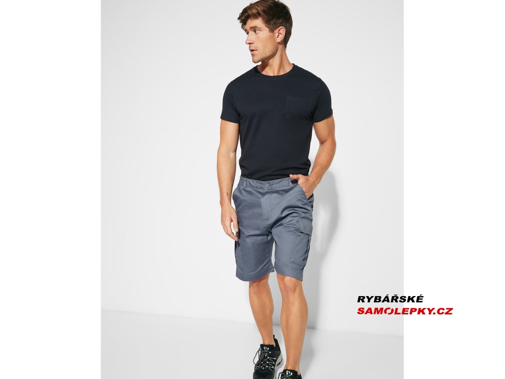 Pánské pracovní bermudy. Elastické stahování na bocích. Dvě přední kapsy. Dvě boční kapsy s patkou se suchým zipem. Dvě zadní kapsy na knoflík.