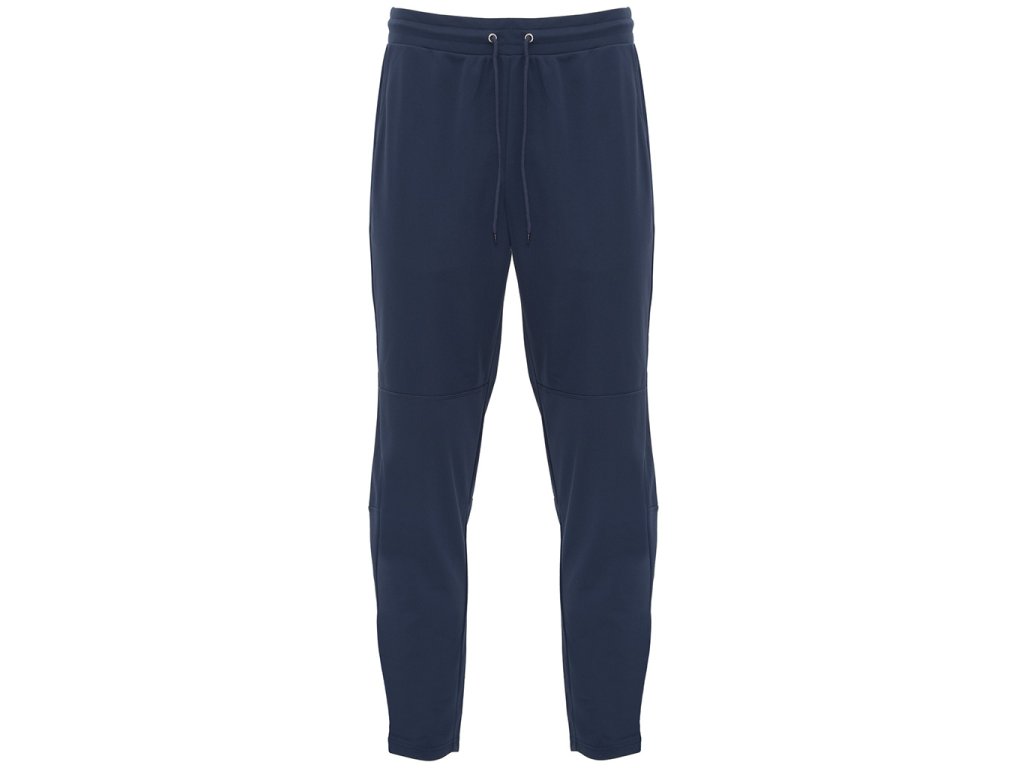 Dlouhé kalhoty úzkého střihu. Kalhoty mají elastický pas s možností nastavení šňůrkami na vnější straně, boční kapsy, příčné švy v polovině stehna, postranní rozparky se zipy na spodním lemu nohavic.