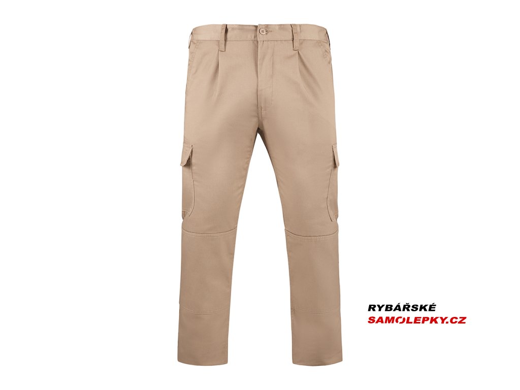 Pracovní kalhoty z vysoce odolné látky. Upravitelný obvod pasu pomocí elastické části na zadní straně. Jedna postranní a dvě zadní funkční kapsy kryté klopou se zapínáním na suchý zip. Pas s poutky na opasek.