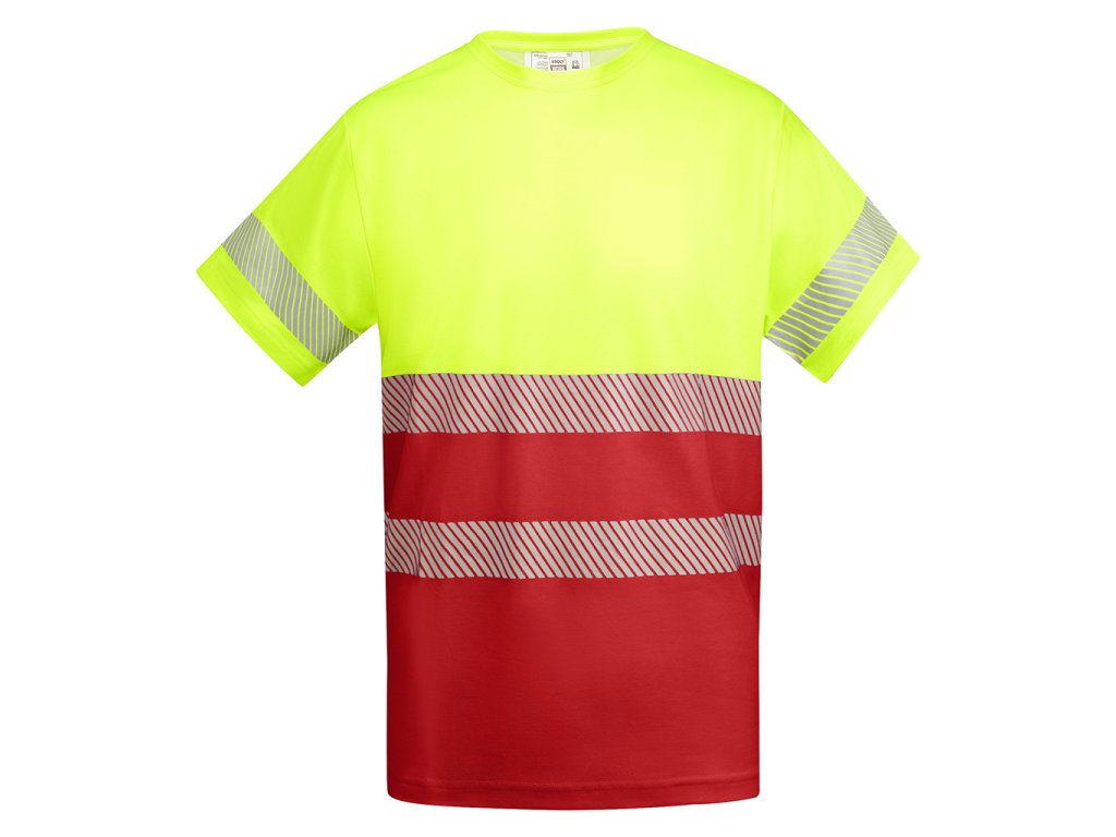 Pánské pracovní tričko s krátkým rukávem a vysokou viditelností. Dva segmentové pruhy s vysokou viditelností na hrudi a jeden na rukávech. Kulatý výstřih z hlavní tkaniny. Pohodlná směsová tkanina z polyesteru a bavlny pro větší prodyšnost.. Certifikace CE podle normy: EN ISO 13688:2013/A1:2021 a EN ISO 20471:2013/A1:2017. Třída I.Doplňkové parametry