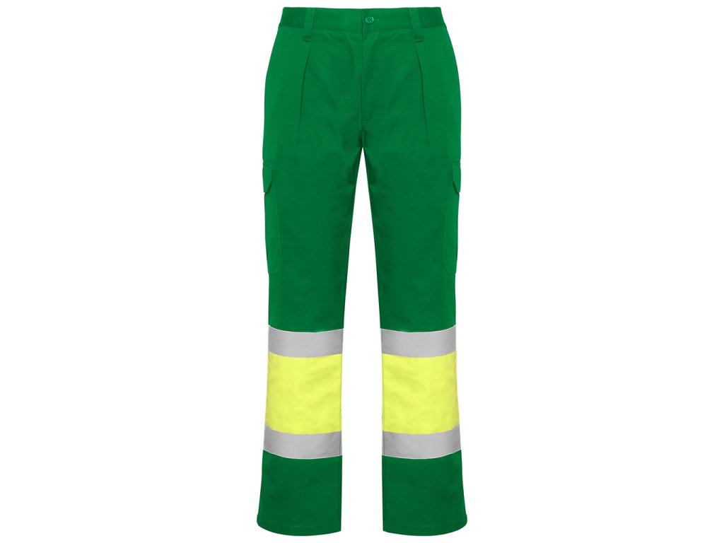 Multifunkční reflexní kalhoty s vysokou viditelností. Elastický pás vzadu. Dvě zadní kapsy s patkou a suchým zipem. Dvě přední kapsy a dvě boční kapsy s patkou a suchým zipem. Kombinace dvou barev, s reflexními pruhy. Certifikace CE podle norem: EN ISO 13688:2013/A1:2021 a UNE-EN ISO 20471:2013/A1:2017. Sekce vysoká viditelnost. Třída 1.Doplňkové parametry