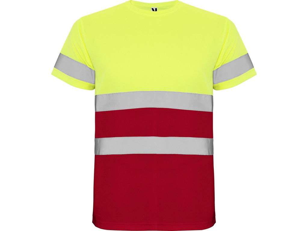 Vysoce viditelné, prodyšné triko. Kulatý výstřih ve stejné látce a zpevněné švy na průkrčníku. Dva reflexní pruhy na hrudi a jeden na rukávech. Certifikace CE podle normy: UNE-EN ISO 13688:2013/ A1:2021 a UNE-EN ISO 20471:2013/A1:2017. Třída I.