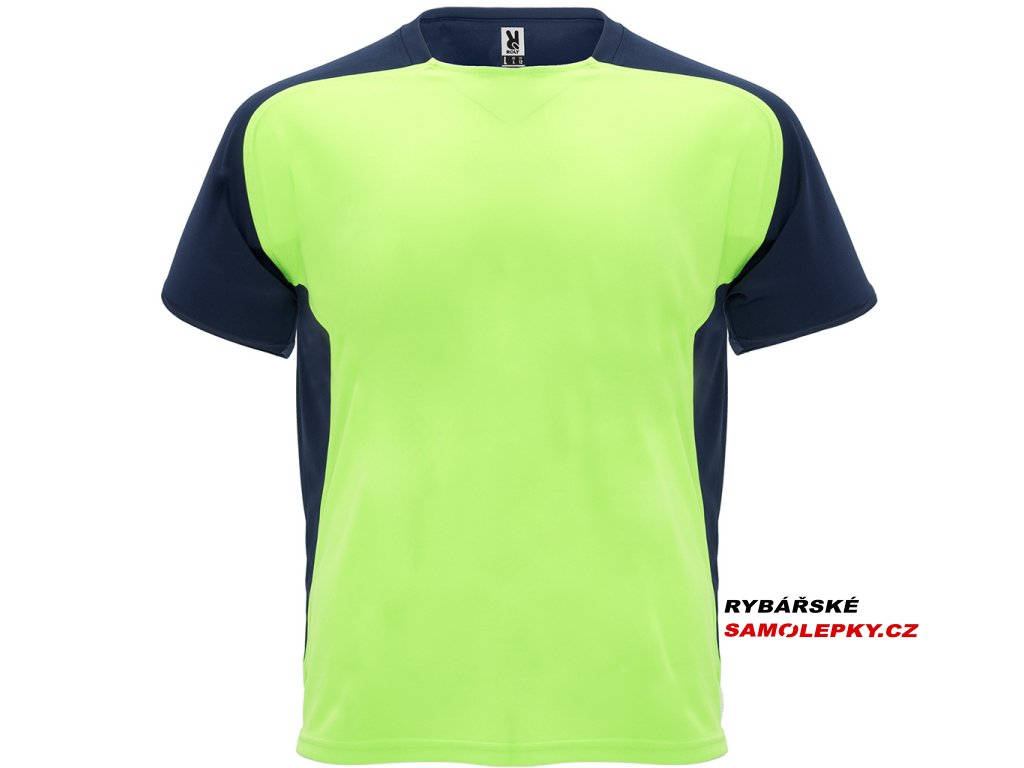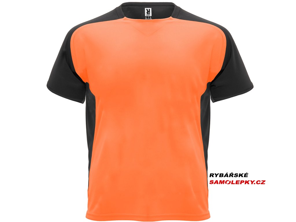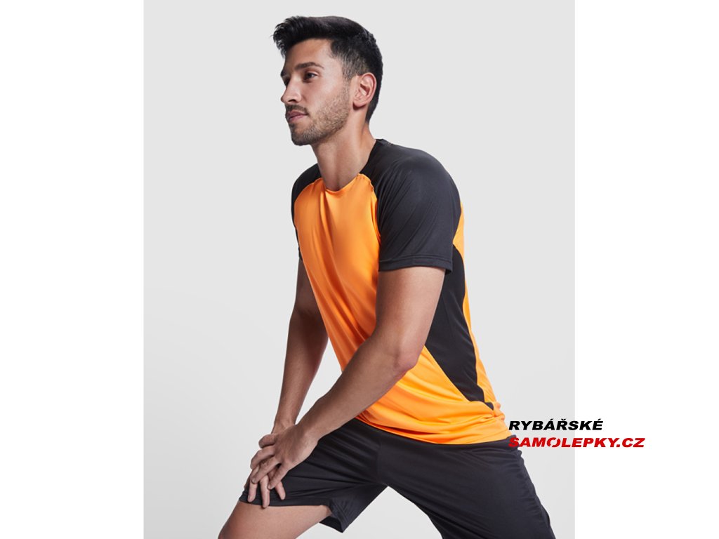 Funkční tričko s krátkým raglánovým rukávem. Kulatý výstřih se zakrytím švů tón v tónu. Kontrastní rukávy a postranní panely.