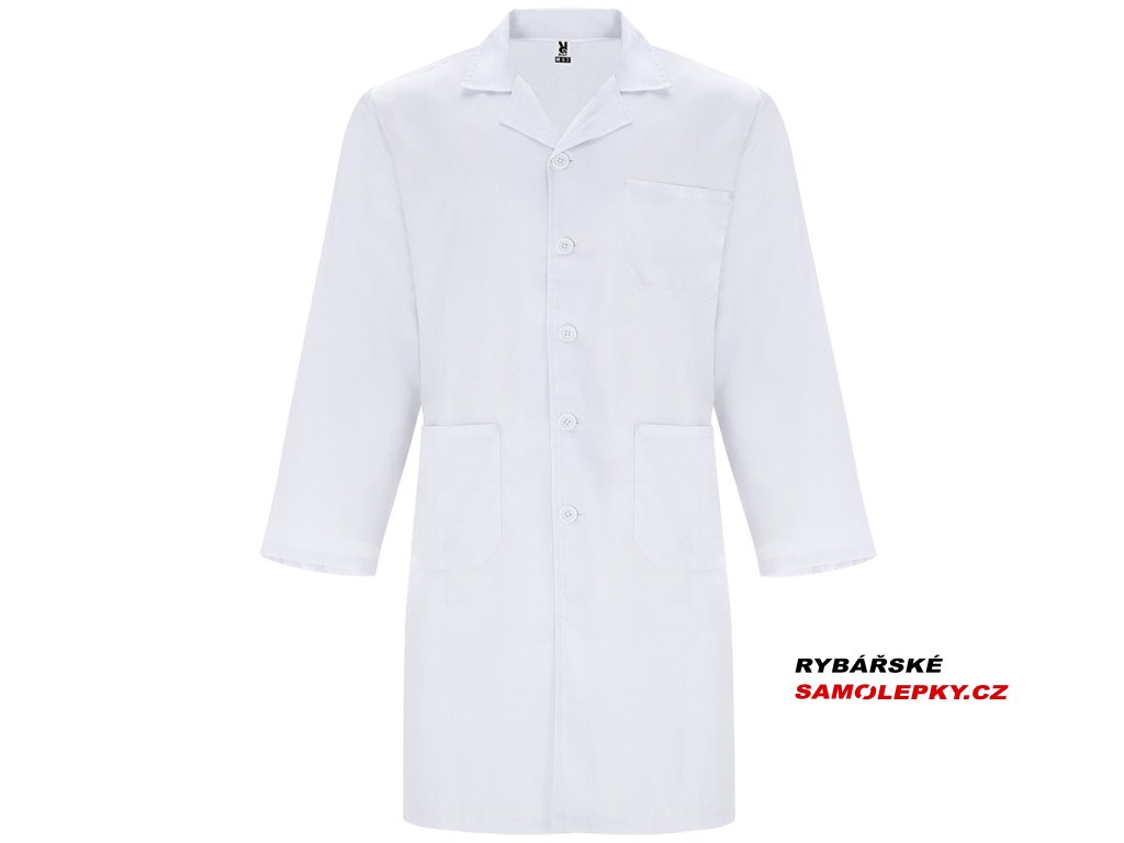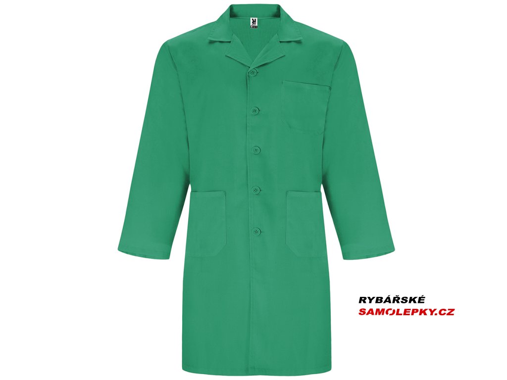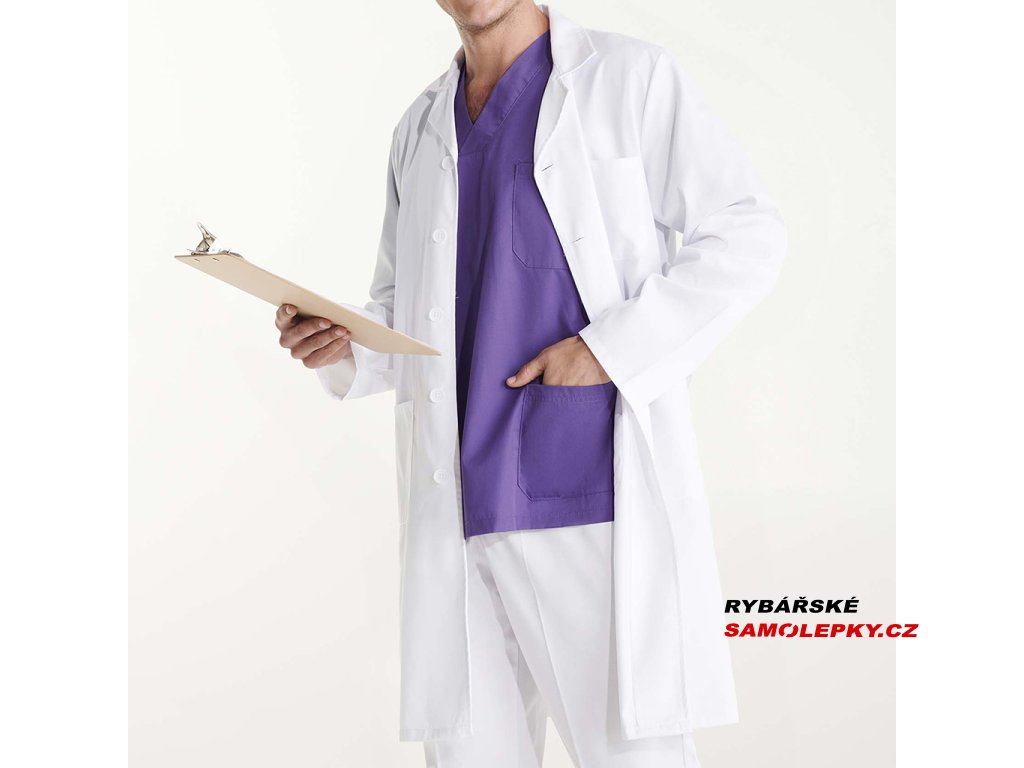 Pánský pracovní plášť Vaccine, který má límec s klopou, středové zapínání na 5 knoflíků ve stejné barvě plaště, náprsní kapsu, dvě postranní kapsy a pásek vzadu.Doplňkové parametry