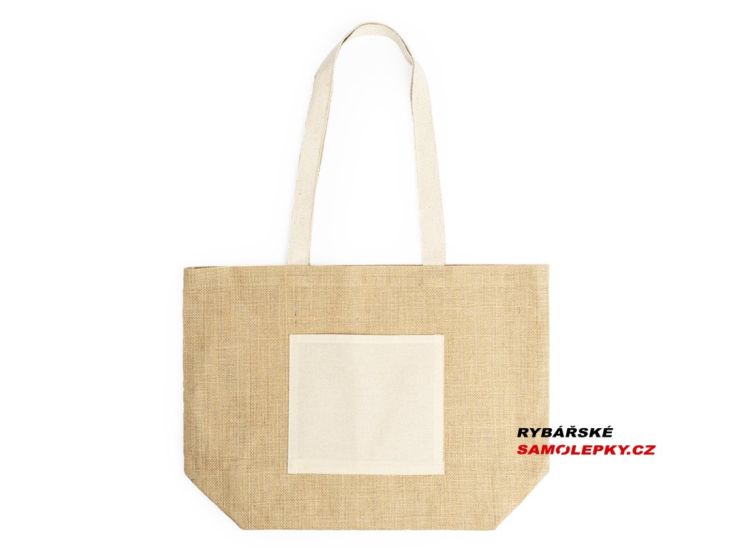Taška z laminované juty s přední kapsou a dlouhými uchy z přírodní bavlny.Doplňkové parametry
