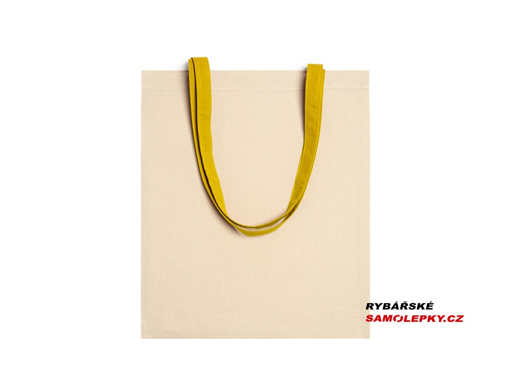 Taška ze 100% bavlny o gramáži 105 g/m² s barevnými uchy dlouhými 70 cm.Doplňkové parametry
