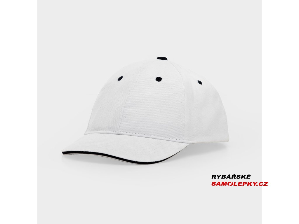 Šesti panelová čepice s kontrastní linkou, zapínání na suchý zip.