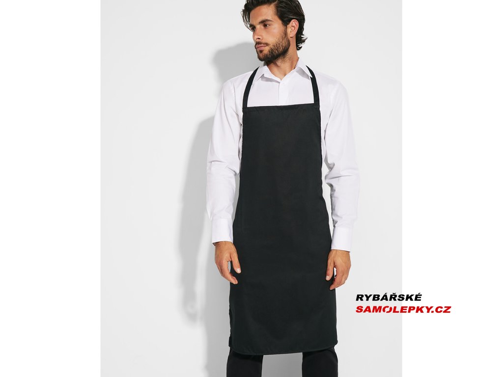 Dlouhá zástěra bez kapes, s páskem za krk a postranními šňůrkámi na uvázání ve stejné barvě. Model je vhodný pro přípravu potravin. Odnímatelný štítek.Doplňkové parametry
